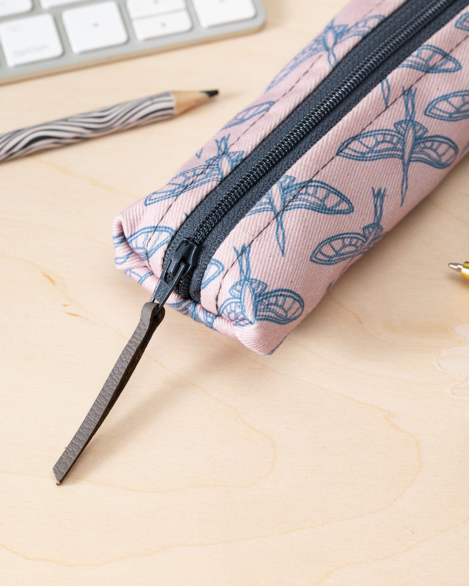 Flight of Heron, Dusky Rose Slimline Case - fully lined eco-cotton case with zip and thread from recycled plastics (handmade in Scotland)
