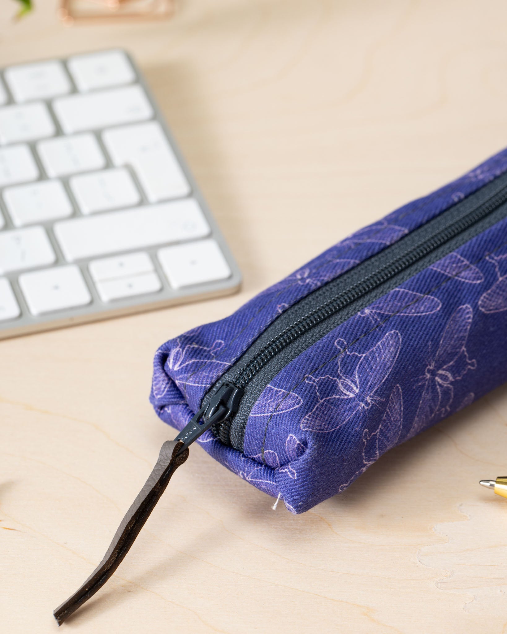 The slimline pencil case has been printed and handmade in Scotland on 100% eco-cotton, also has a cotton lining and a zip made from recycled plastics with a leather zip pull. It's a great size for on the go, fitting lots of different pens in, or alternatively use it for make-up, accessories, headphones etc or even to keep medication concealed but easy to hand.