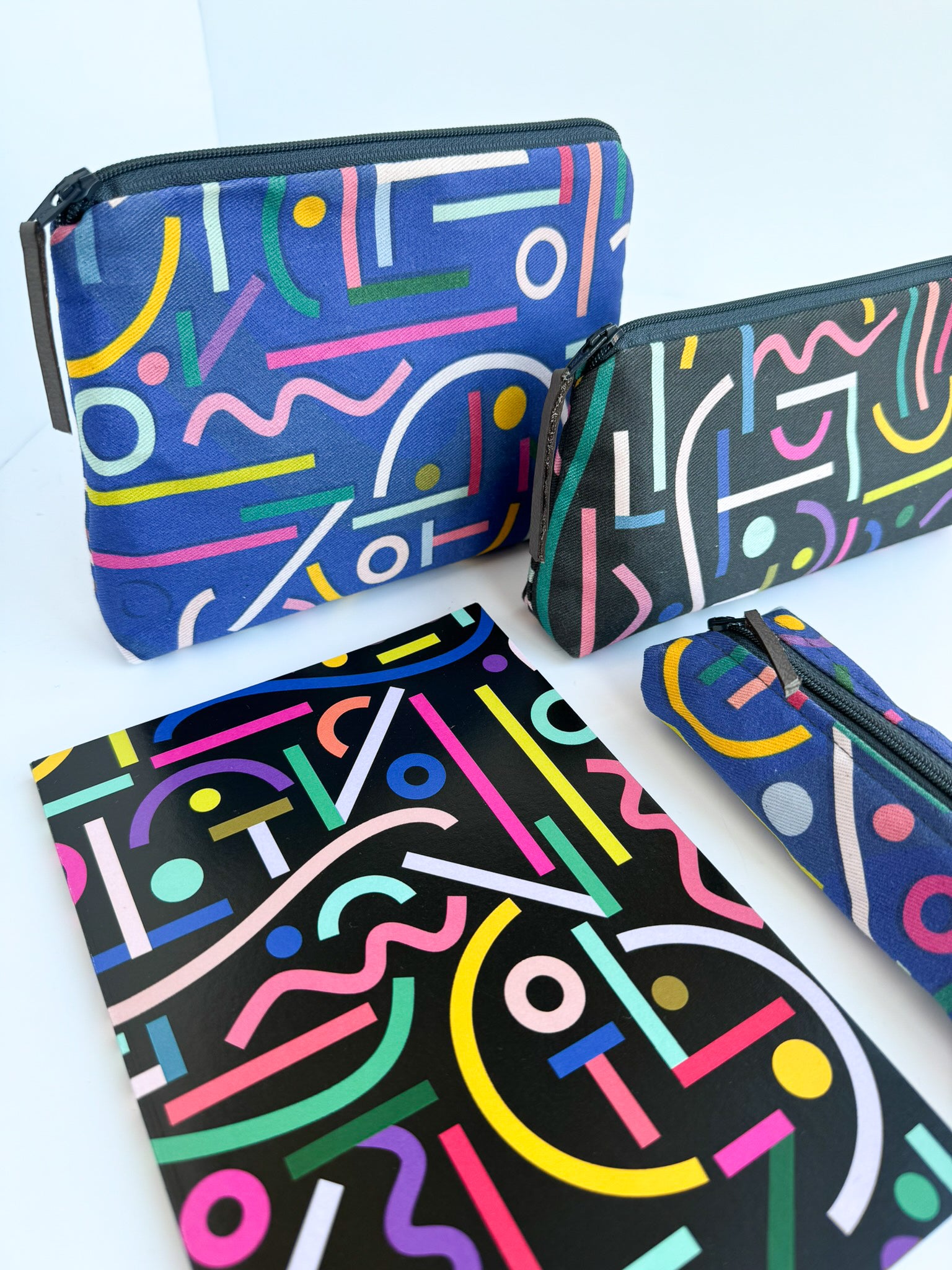 Featuring my colourful and popular abstract Cutouts pattern - in not 1 but 2 colourways - this case goes perfectly with the stationery range. And I’m ridiculously excited to be able to add these complementary fabric items to the Holchester Designs range now that I’ve found a collaborator that is both UK based and who also values sustainable practices just like me.