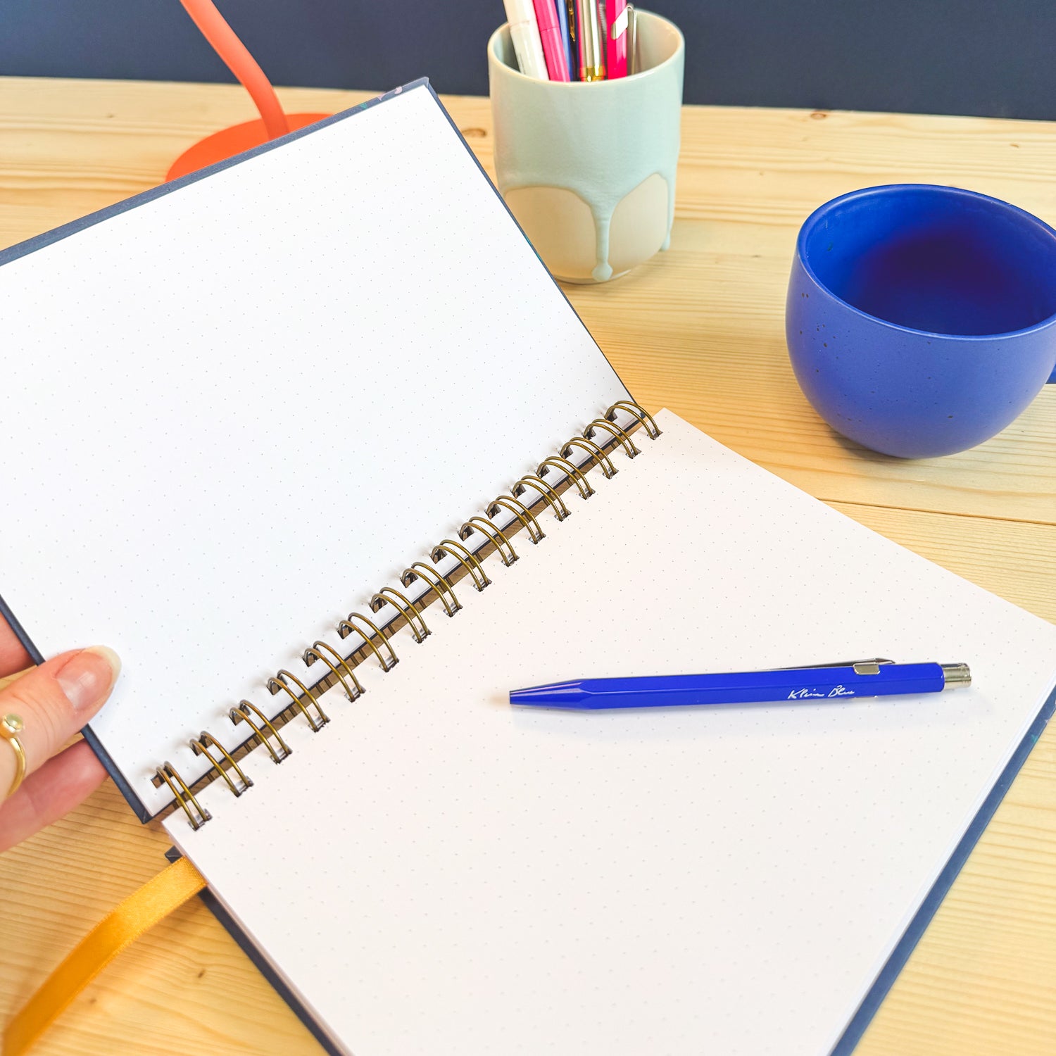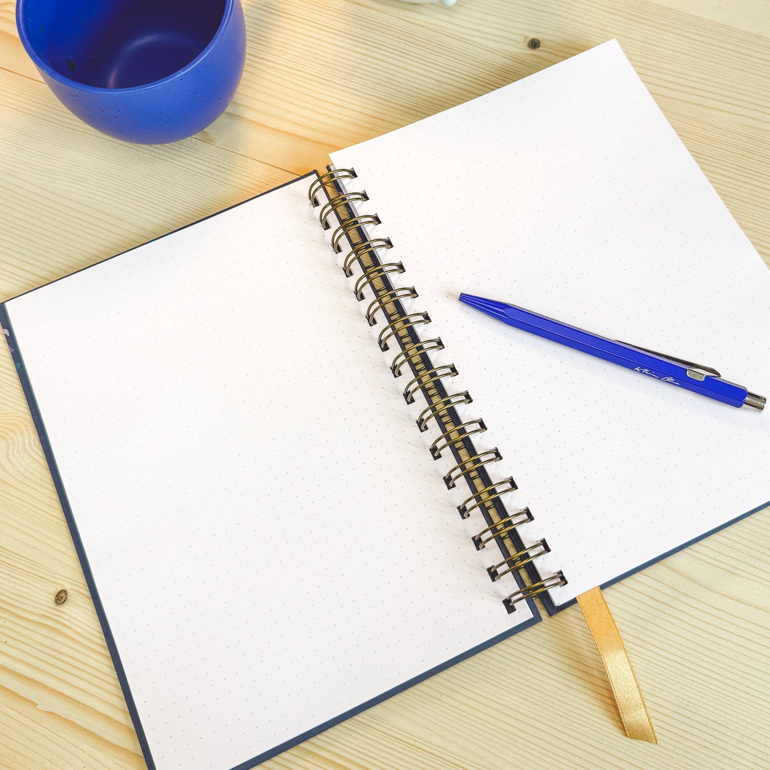 The finishing touches are the gold ribbon page marker, so you can always find your place straight away, the brass-coloured metal spiral binding and the gold foiling on the cover that mean this notebook will always feels a little bit special when you get it out to use it.