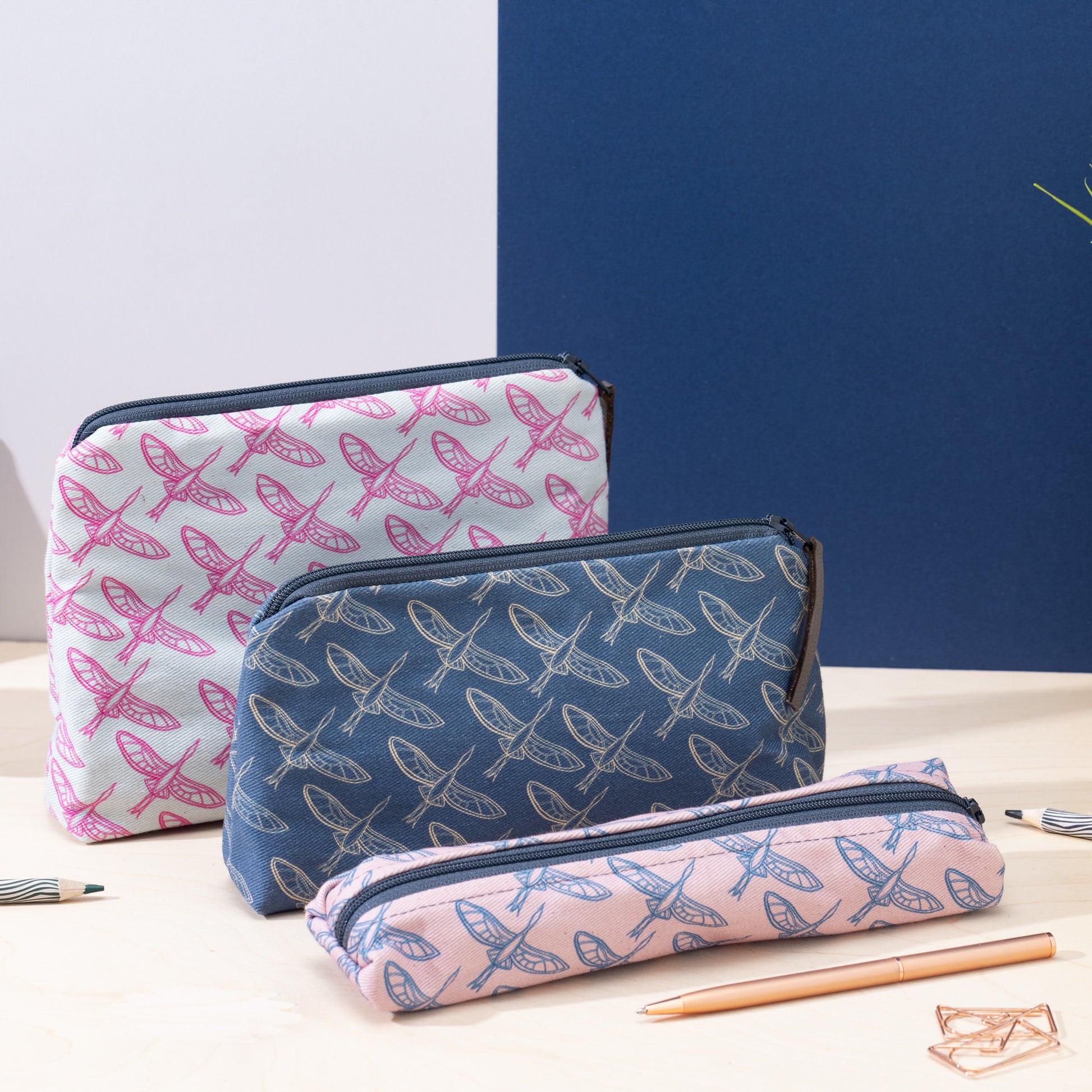Bring colour and pattern to your handbag, luggage and desk with a full set of cases in the elegant Flight of Herons pattern.