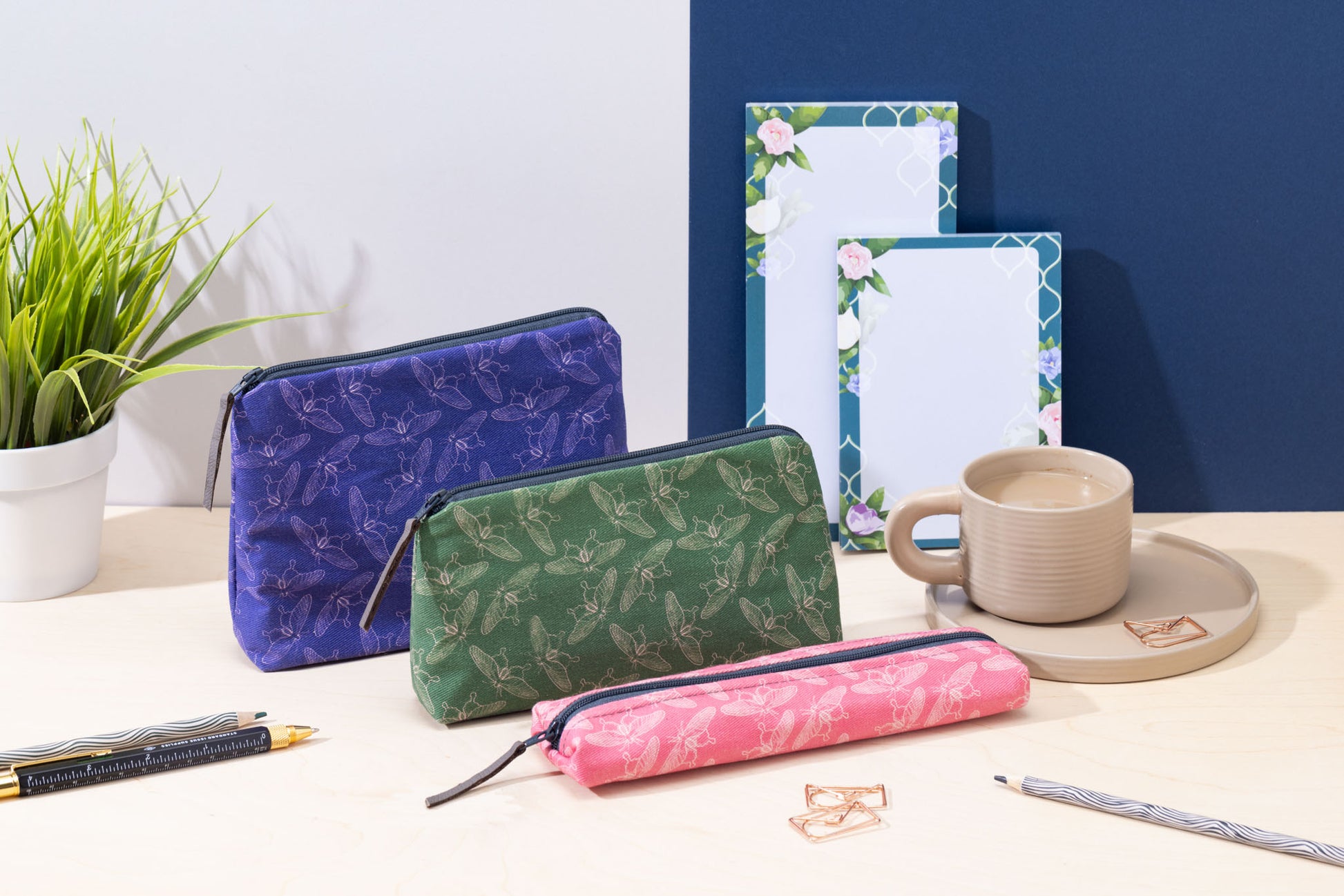 My Moonlit Moths pattern originated from a trip to a butterfly house with my daughters, and seeing them so in awe of all the different species, sizes and colours. Once sketched out, I then drew them digitally and so I could change colours and adjust their scale to be used across the collection.