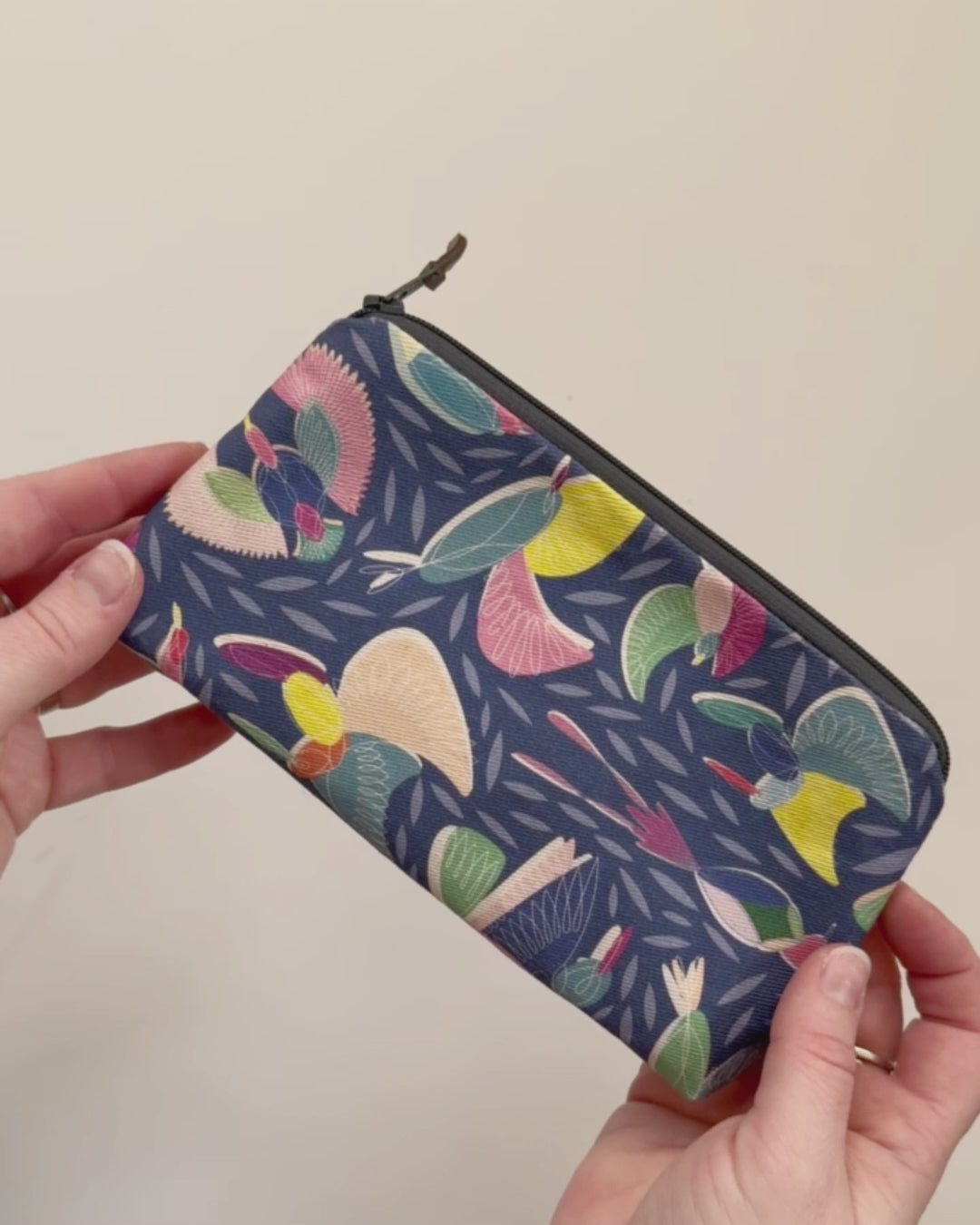 These are printed in Scotland on sustainable cotton, and then handmade (also in Scotland) in small batches to ensure minimum fabric waste. The YKK zip is really sturdy, made from recycled plastic and with a leather zip pull for ease of opening. Plus the thread used is also from recycled plastic and the case is fully lined for maximum practicality. It will be posted out to you packaged simply with a recycled and recyclable tag, before being wrapped and posted out in our standard recycled/recyclable plastic-free packaging.